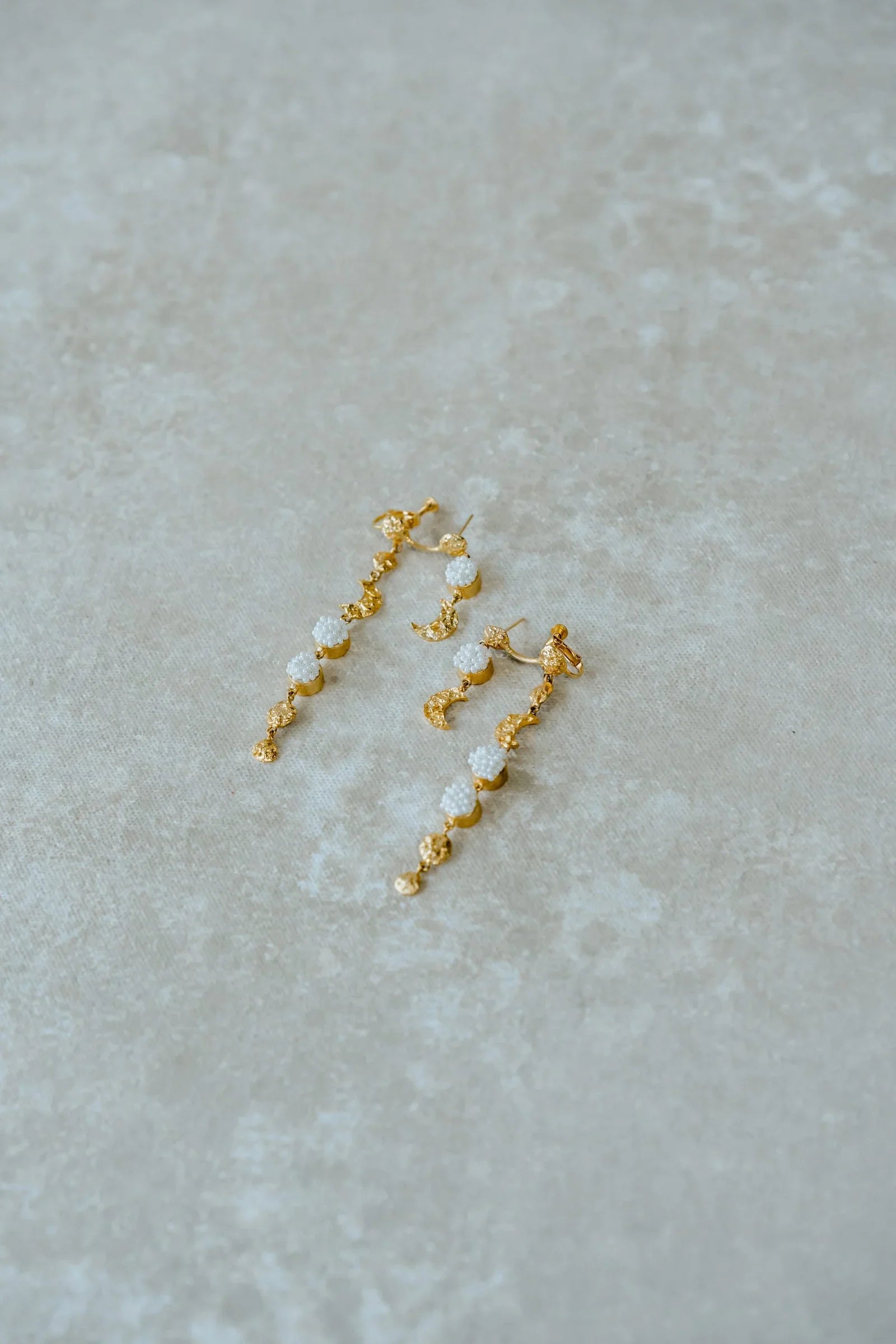 Our Chandni is the most stunning pair of earrings you will find. Dual danglers that don’t need two piercings. All you have to do is clamp it and Voila! We love Chandni, we love the little crescent moon it has, and we love the absolute joy of wearing a pair so lightweight and fun. We hope you love them too.
