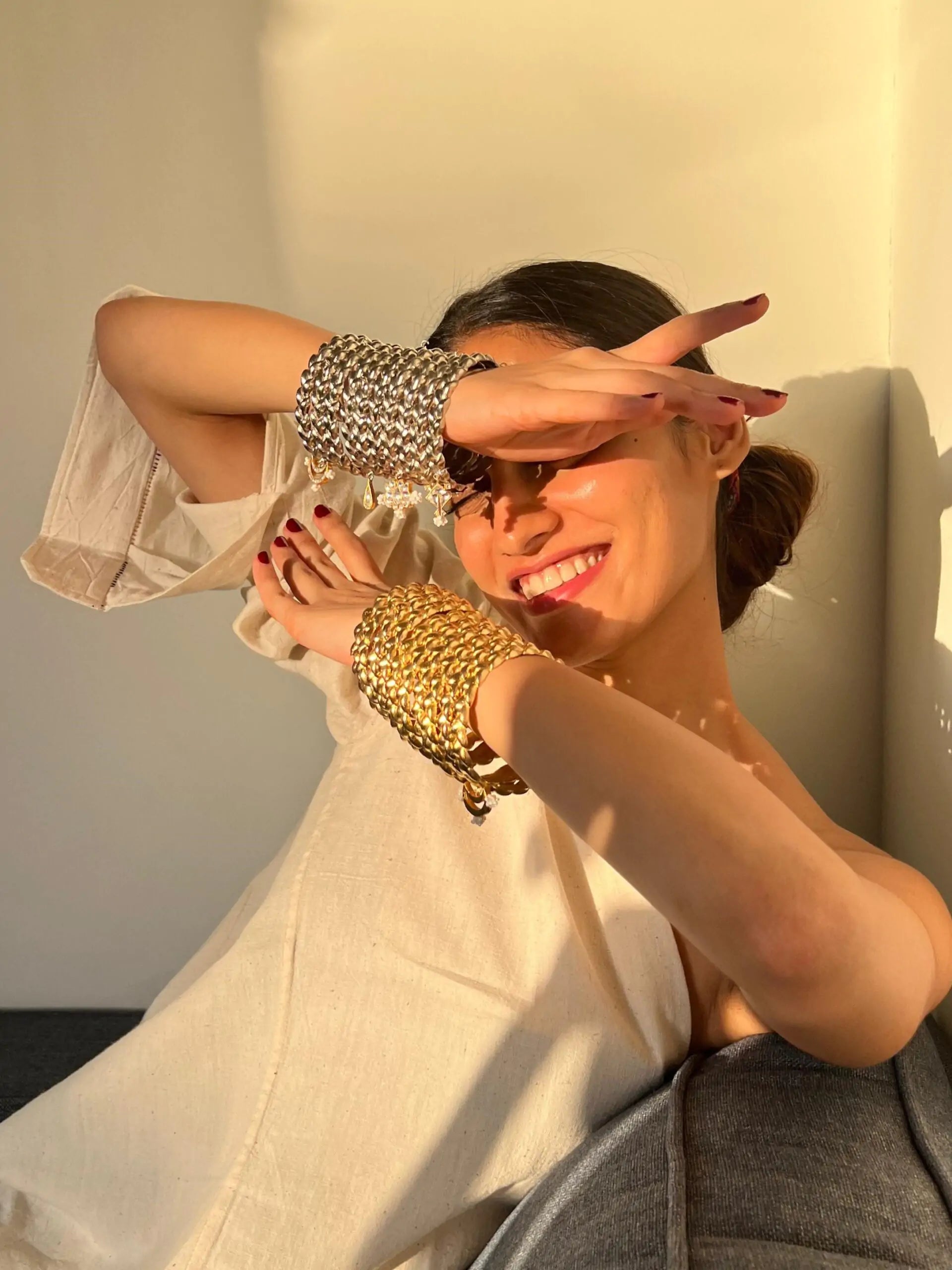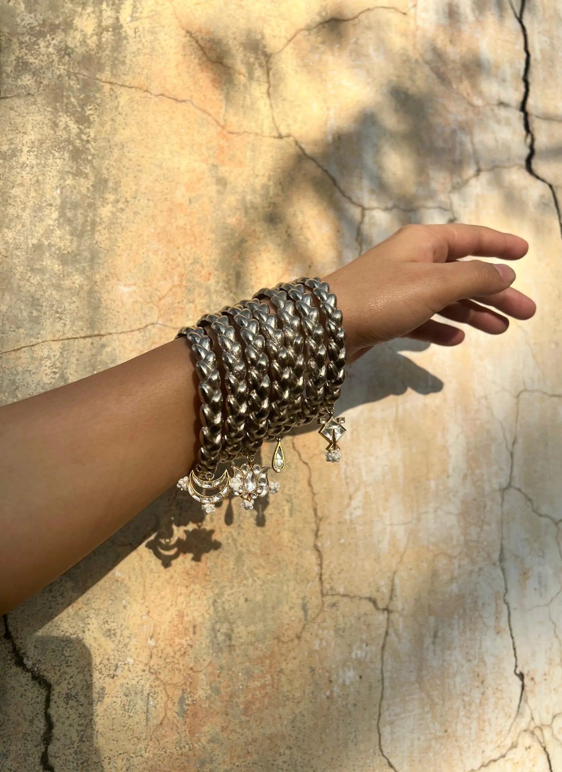Choti, meaning braids, held a special significance for the designer, entwining long, luscious tresses into a cherished family tradition. Aarjavee’s grandfather, filled with immense affection for his granddaughter, always requested two simple yet elegant ‘chotis’ for her. Our Choti bangles are a sweet reminder of the same.