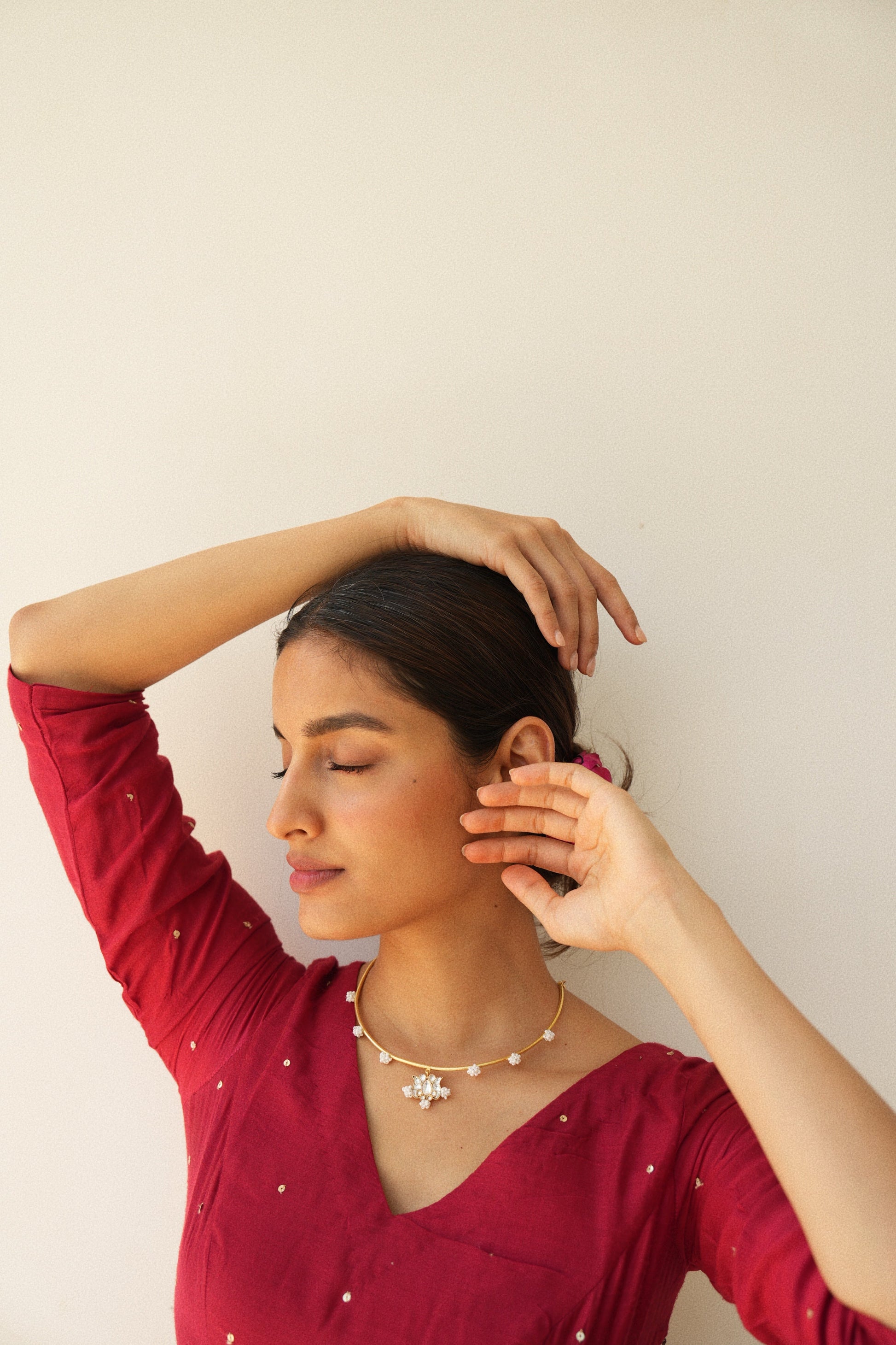Loop Haasli is the most perfect addition to your AARJAVEE collection. It is minimally embellished with our signature glass bead work. It it peek under your shirt or wear it to a brunch.