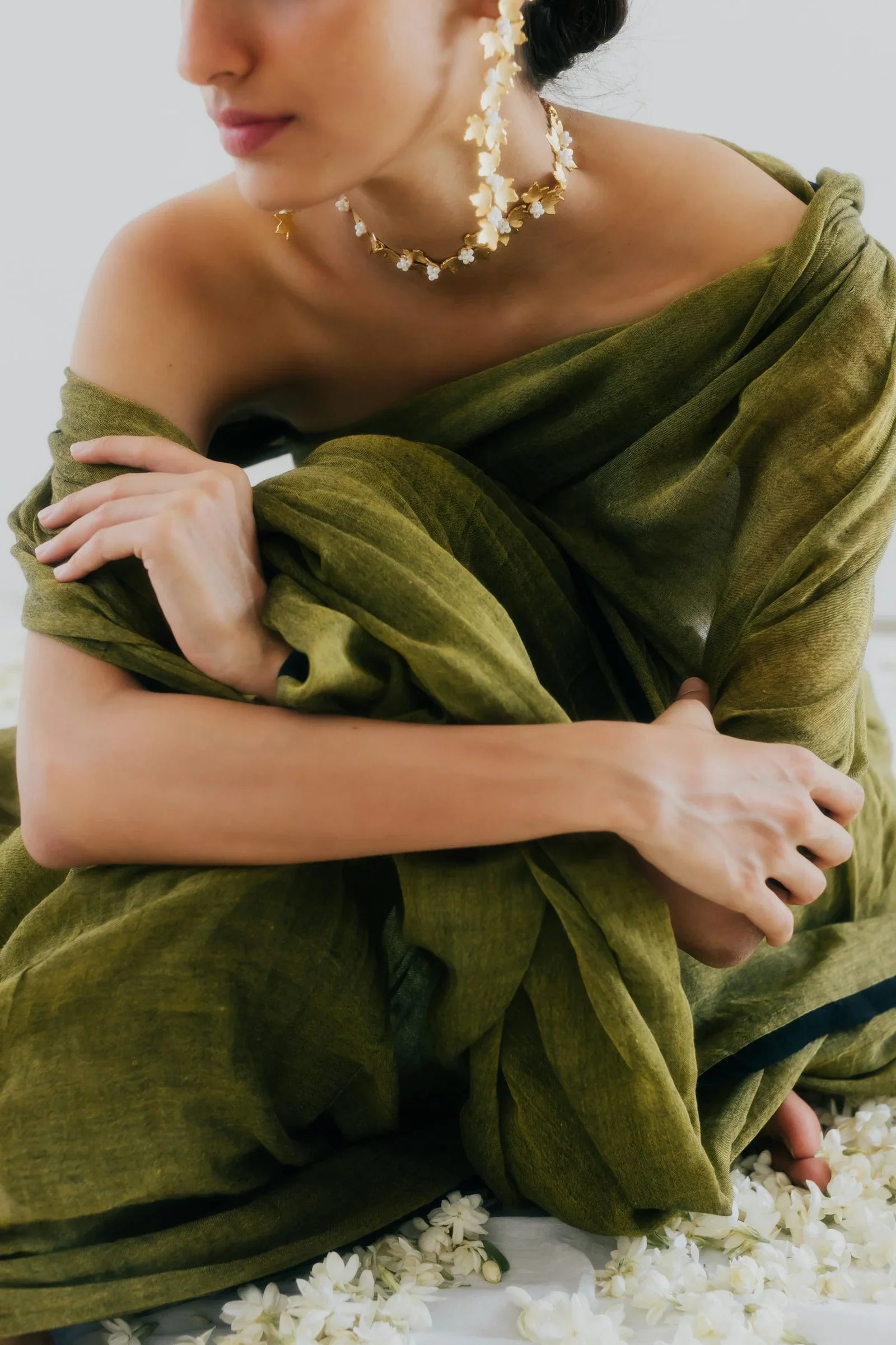 Mogra choker is a simple yet stunning one line neck piece. It sits on your neck like a dream. Layer it with another Mogra choker to get the goddess necklace look or with some minimal chains or just let it shine on it’s own. It will always turn heads.
