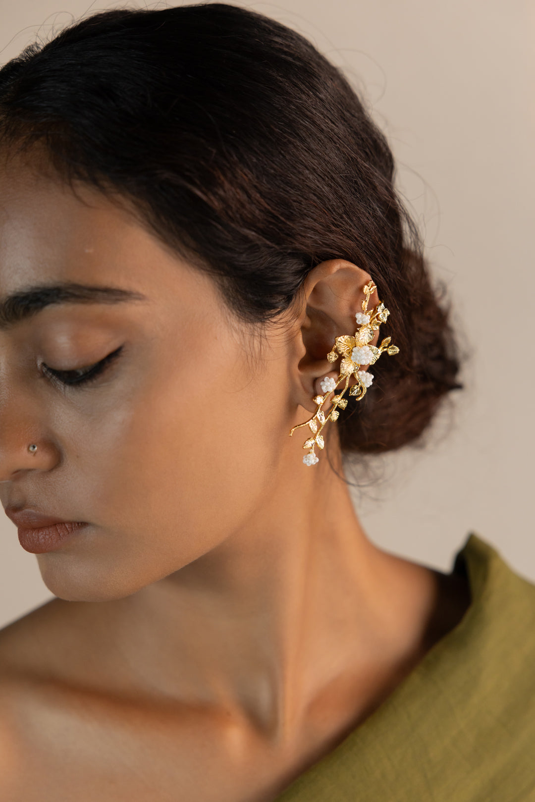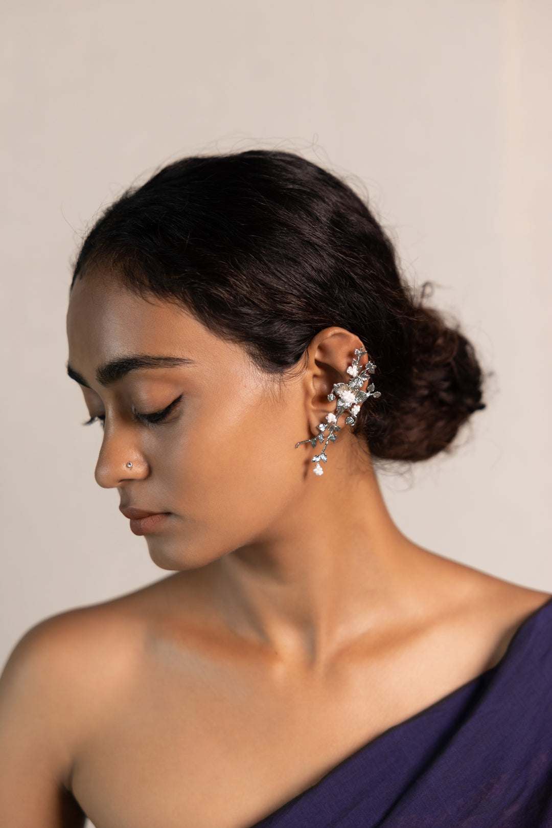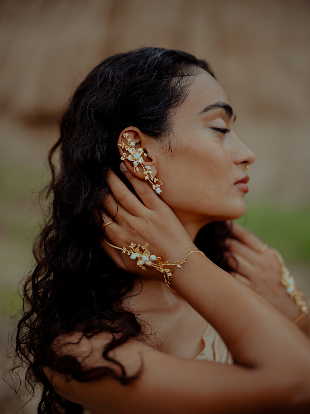One of the most striking pieces in the collection, Nirjala is an ear cuff that rests gently along the curve of your ear - as if it was always meant to be there. Inspired by the way each branch of a tree grows uniquely. yet remains deeply connected, Nirjala becomes an extension of you - fluid, sculptural, and quietly powerful.