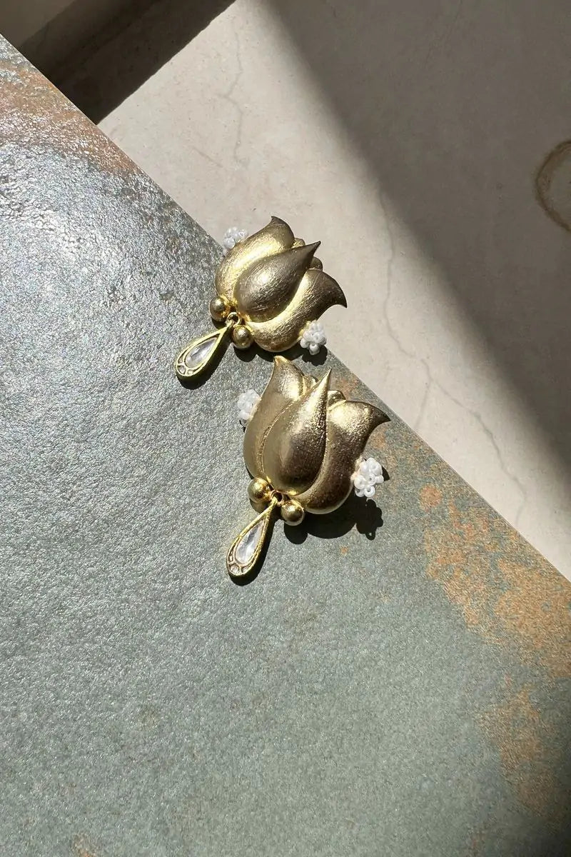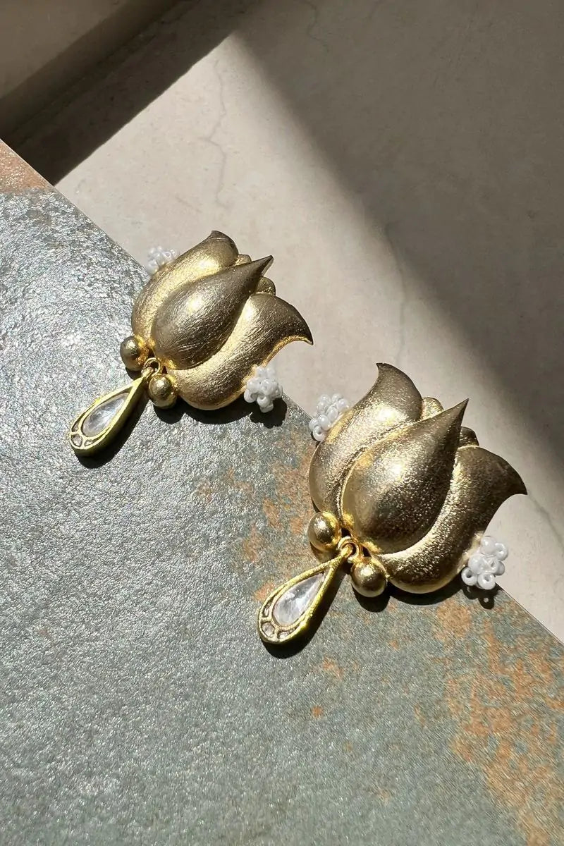 Padma features a beautiful lotus with a droplet in Kundan. The unique combination of beads, metal, and Kundan makes it a head-turner.