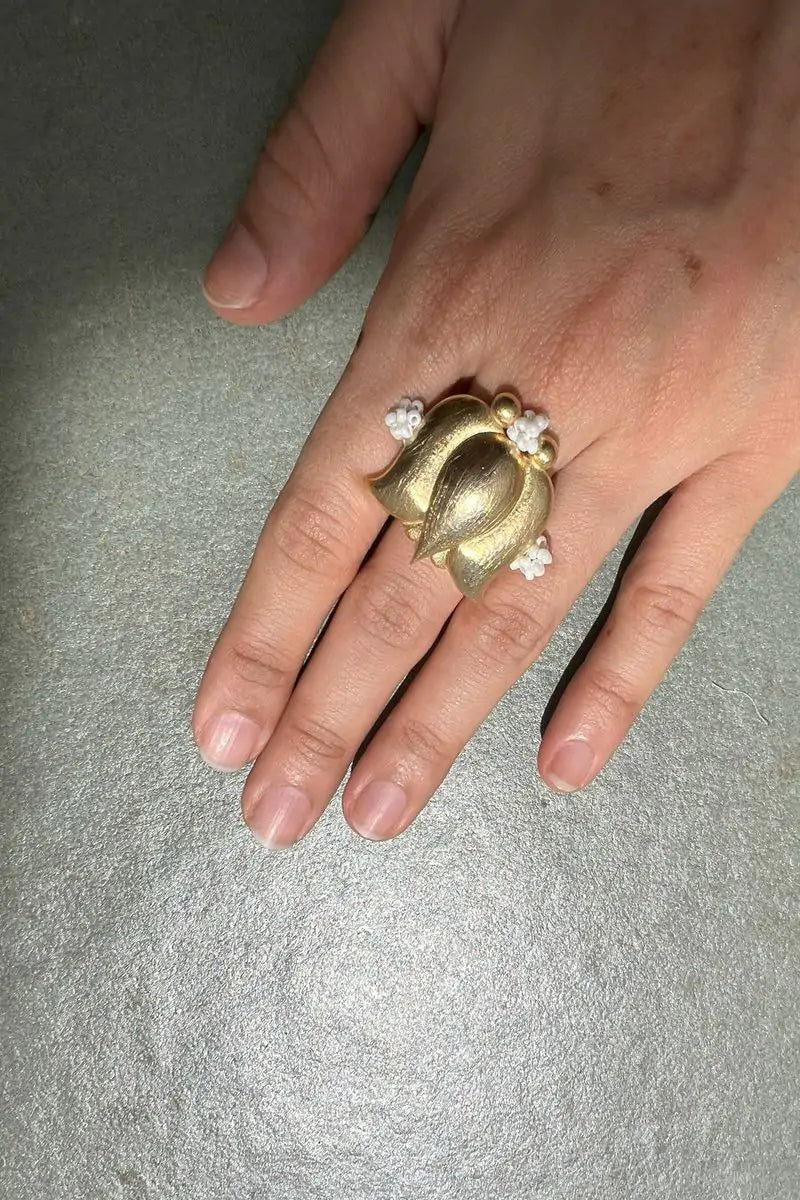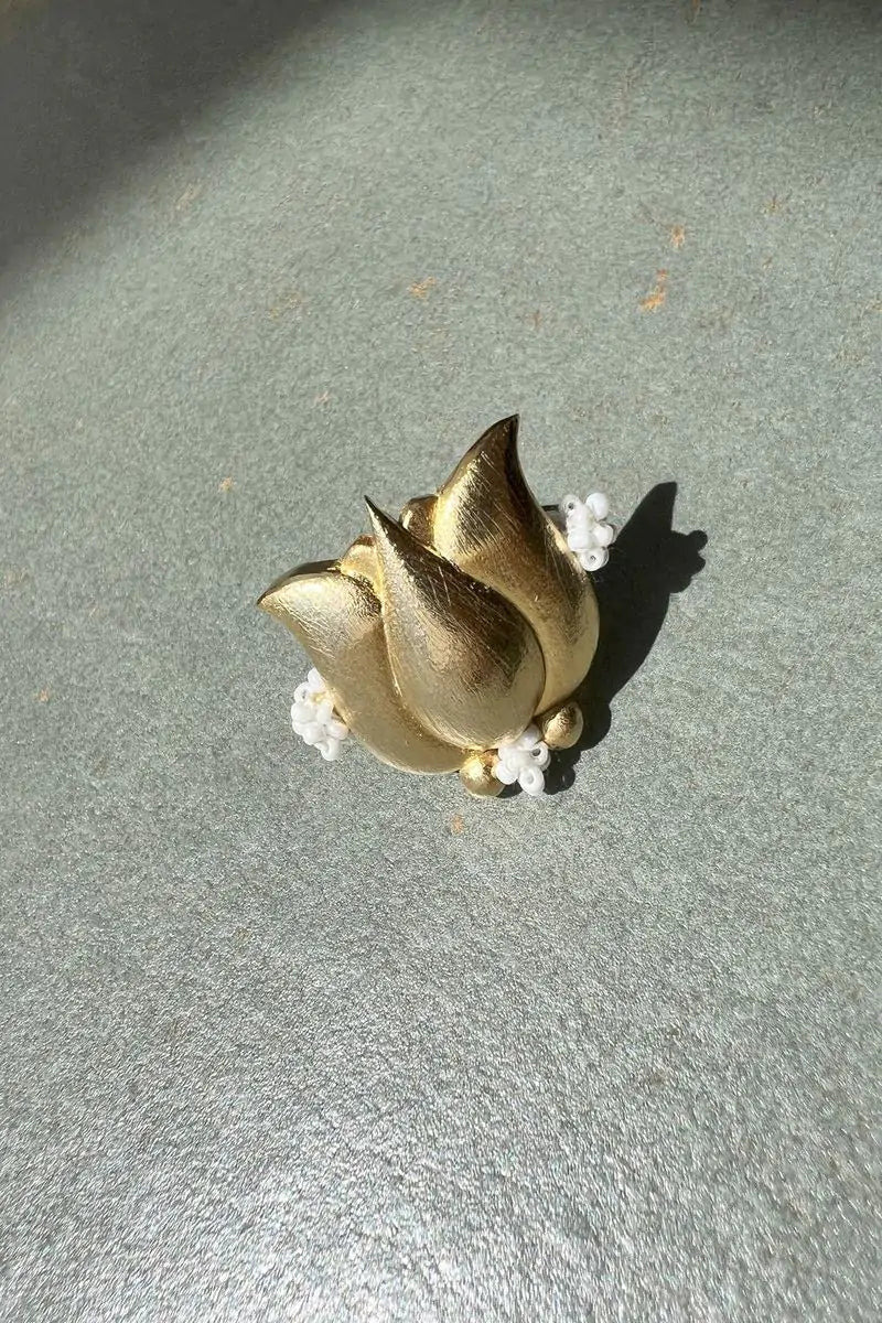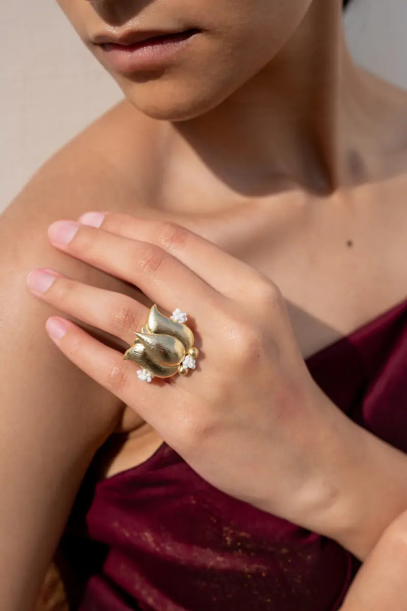 Padma angoothi features a beautiful lotus shining in its glory. The unique combination of beads and metal makes it a head-turner.