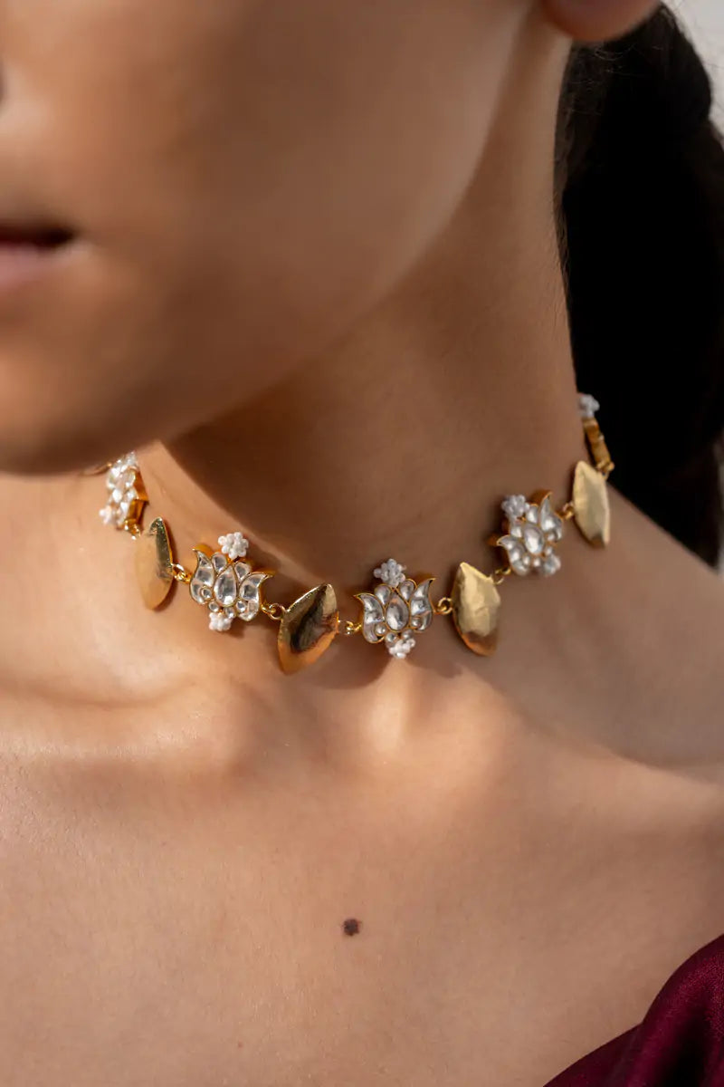 Padma haar is the most versatile; it can be worn as a choker as well as a neckpiece. You can even get away with wearing it as a headband. Padma is simple, elegant, and show-stopping.