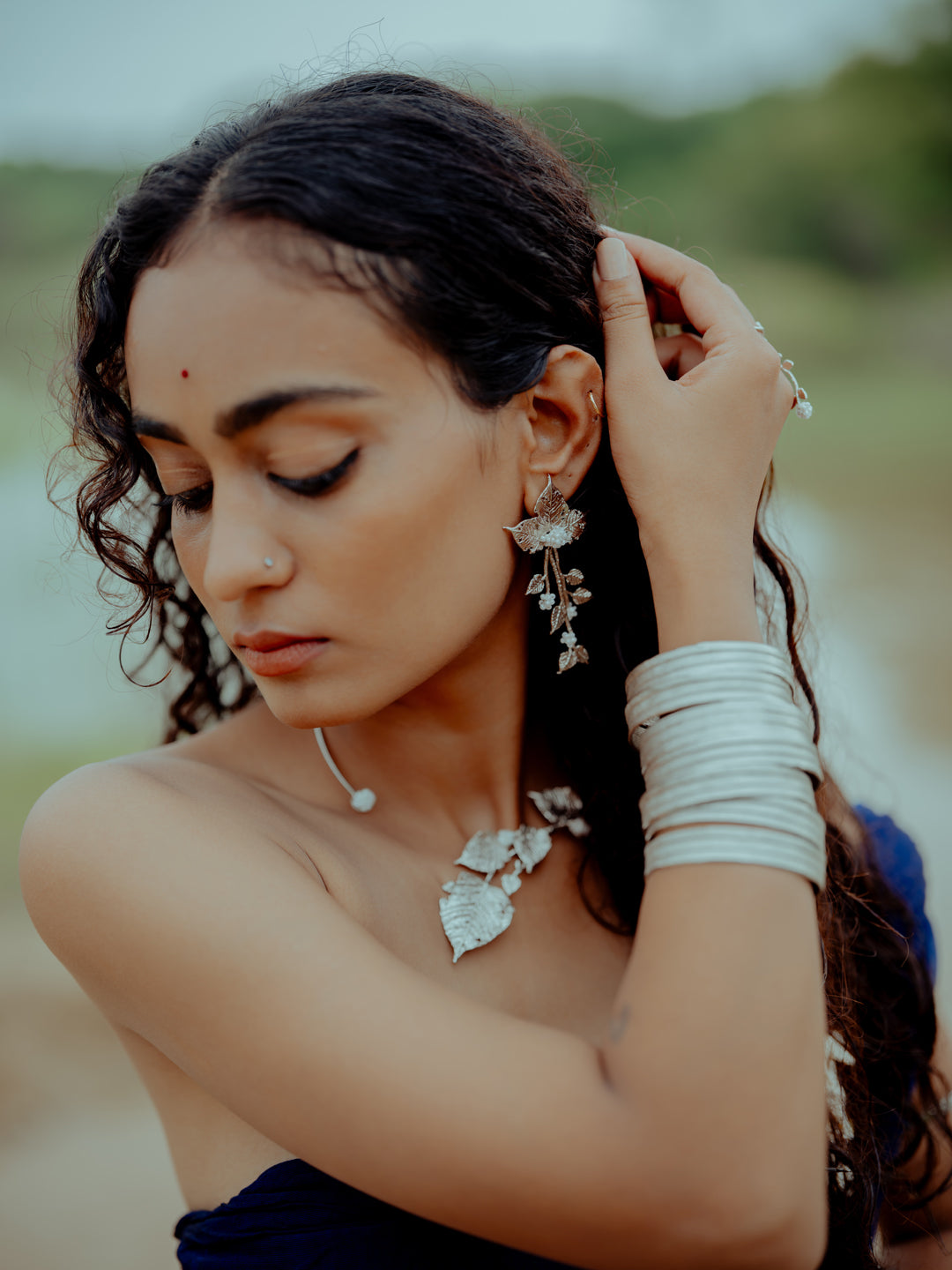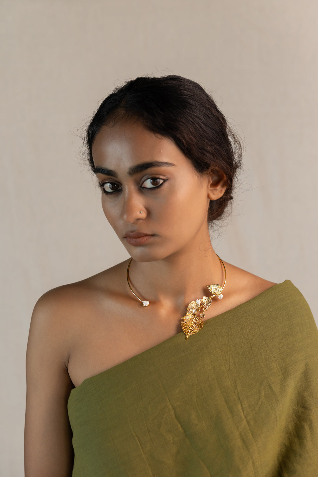 A delicate hasli that rests gently around your neck, the Parij Haasli is an ode to asymmetry. Its off-balance beauty reflects our design sensibilities — soft yet edgy, structured yet fluid. A conversation starter, it doesn’t just accessorise, it lingers.