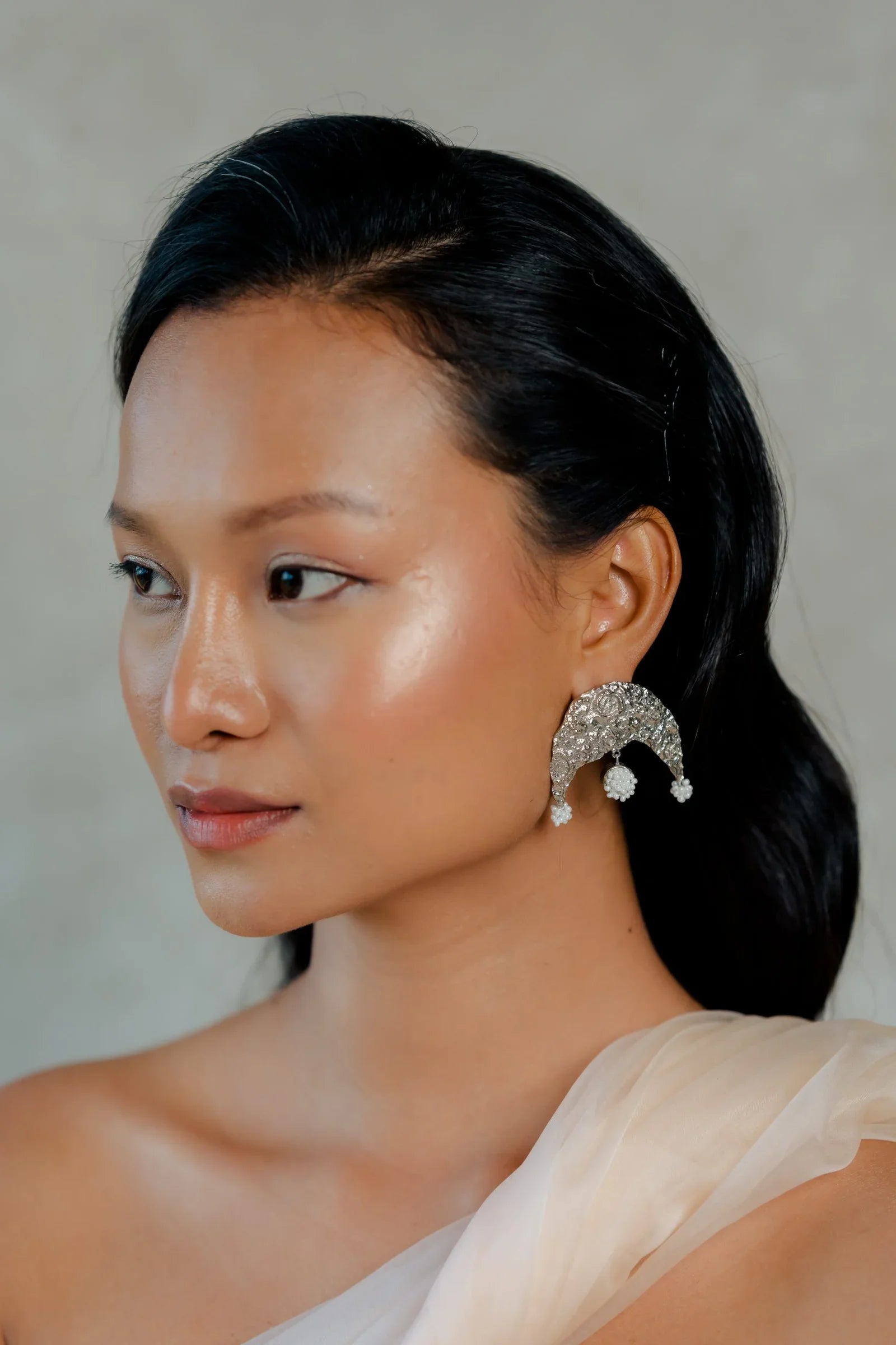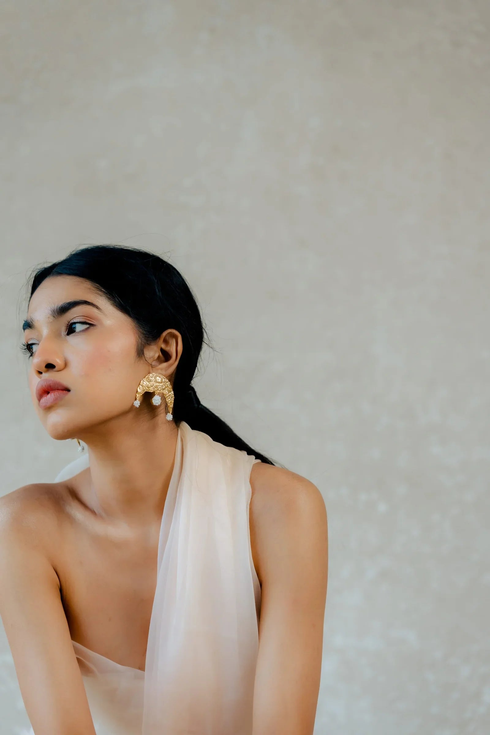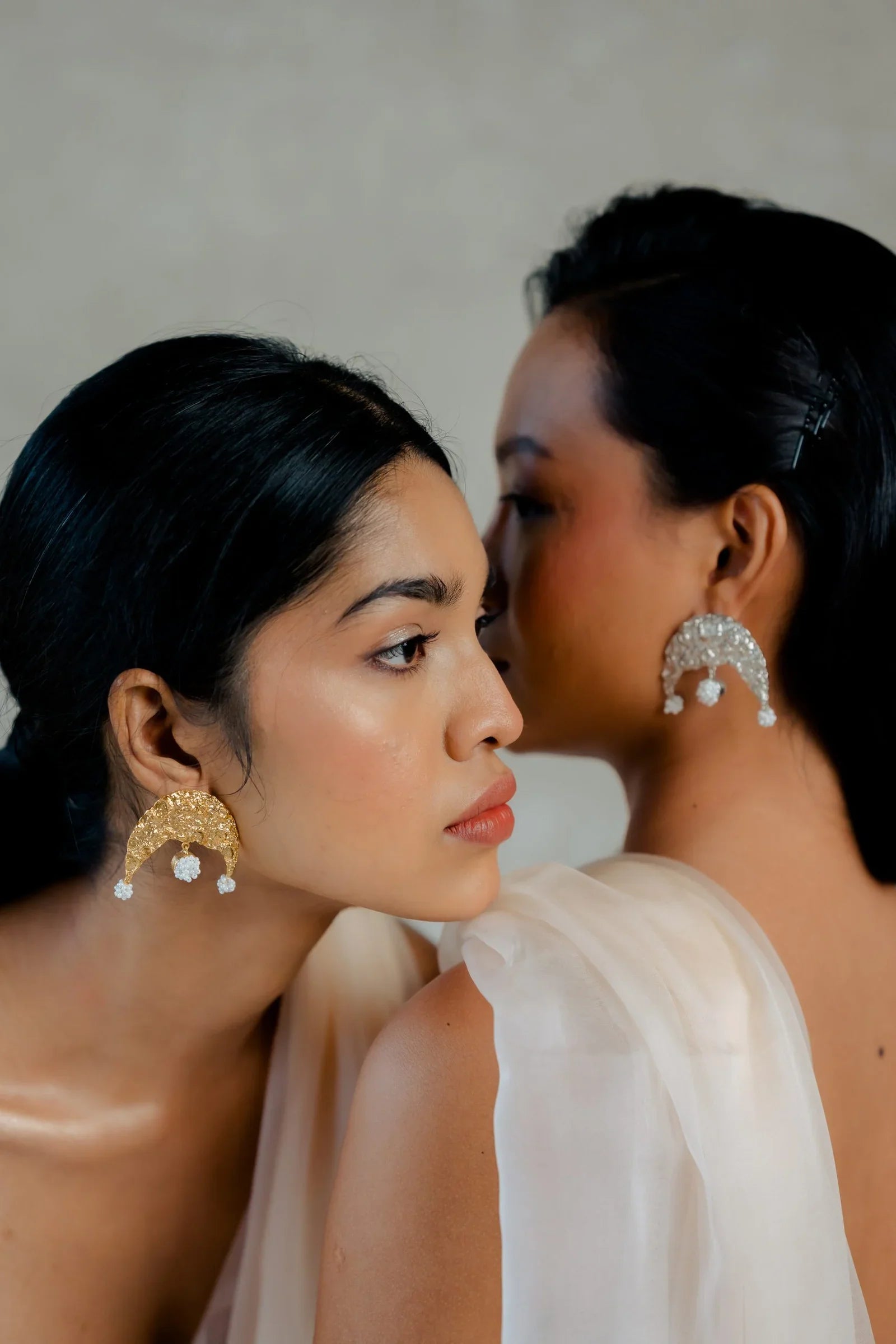 Shwet, a pair of studs that stand apart, a pair that will make you stand apart. They are handcrafted in brass, embellished with glass beads and made with lots of love.