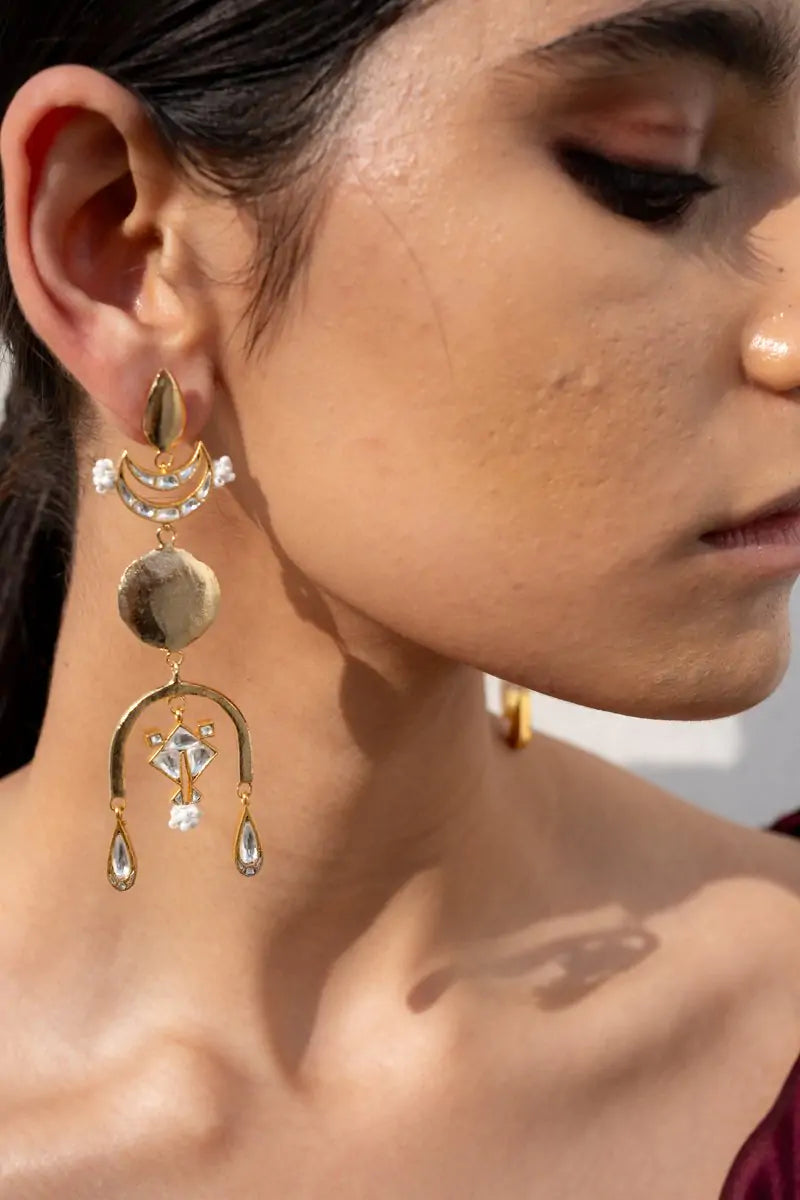 Tijori finds its place in the designer’s personal collection since it is not just her absolute favorite but also the most stunning, subtle take on many memories. It resembles many things if you look carefully: a beaming diya, a bright shining double-layered chaand, the sun and a kite, the rainbow, and rains.